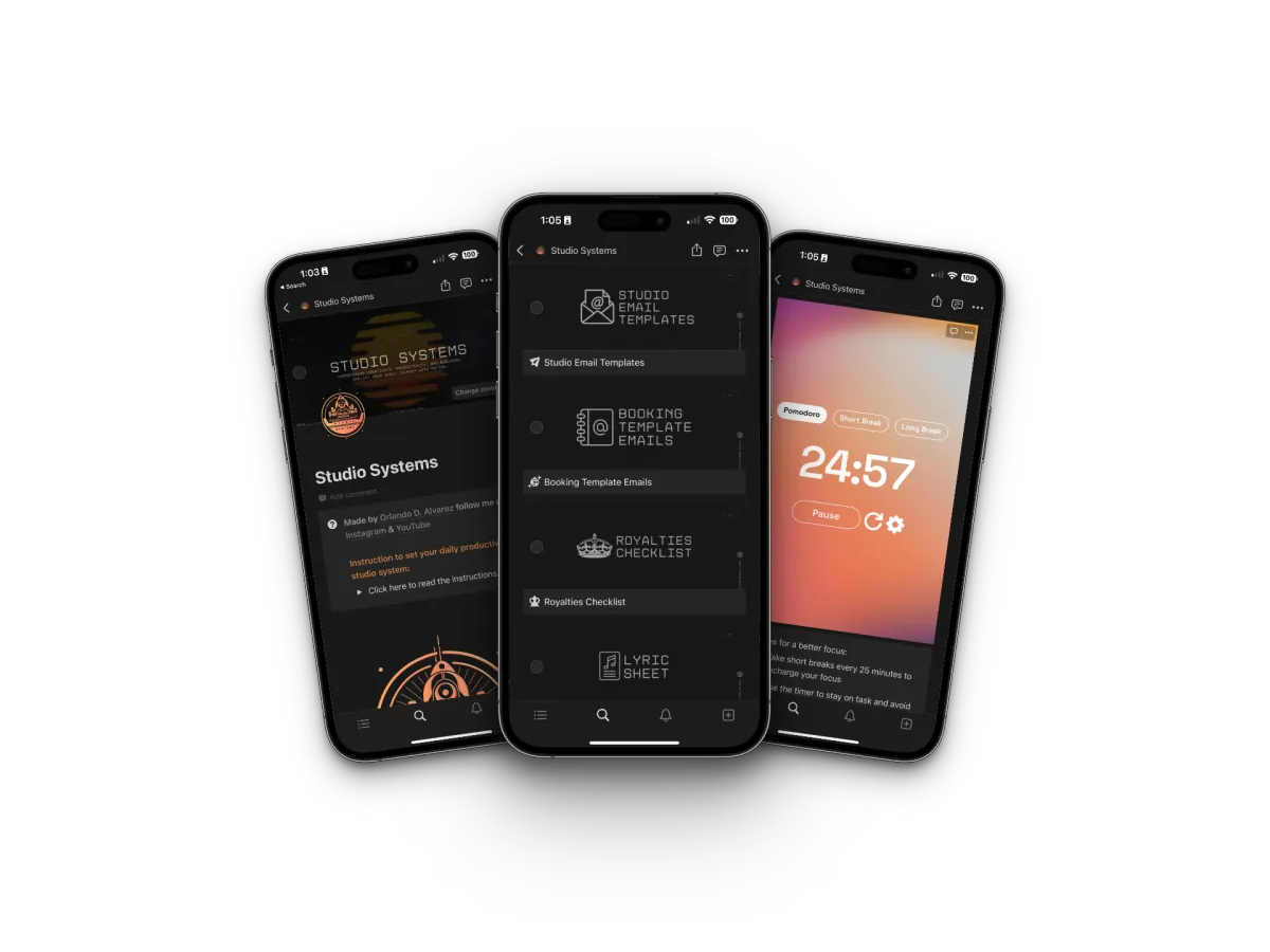 Studio Systems is a Notion-based dashboard and mini-course made for music creators. Track your projects, stay focused, and build better habits in the studio.